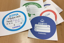 모서리를 둥글게 처리하여 스티커를 떼어 내기도 쉽고 모양도 부드럽게 함. 칼이 밀리는 것을 감안하여 여 .규격 주차스티커